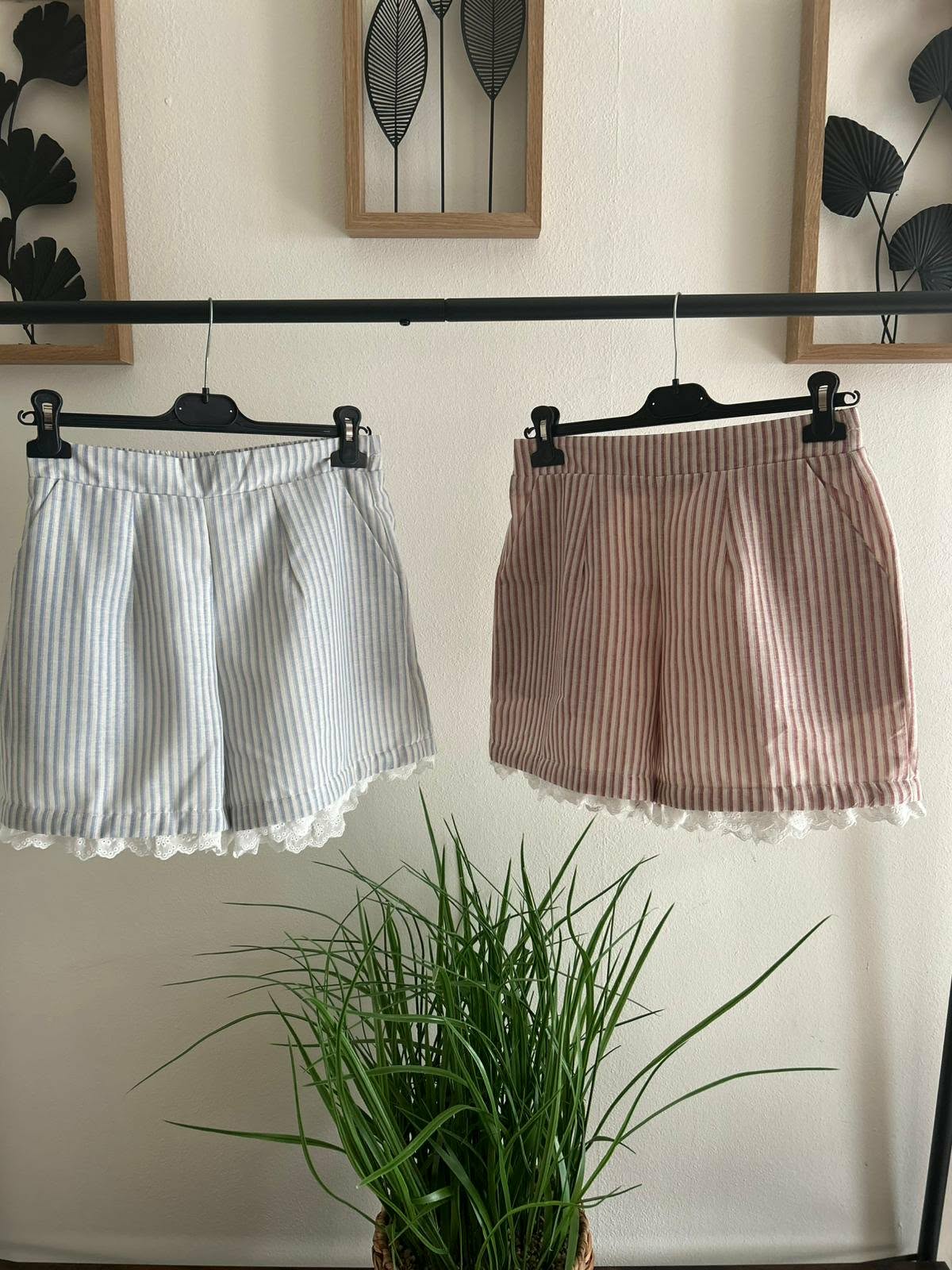 Short 100% coton à fines rayures ,léger et agréable à porter. Sa coupe élégante est sublimée par une délicate finition en dentelle qui apporte une touche féminine et raffinée . Idéal pour un look estival chic et confortable au quotidien.